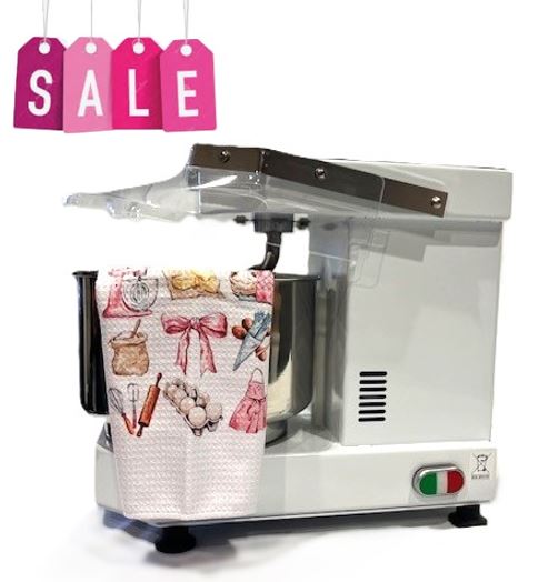 Italian compact table-top spiral mixer with high-strength stainless steel bowl. Ideal for baking schools, small cottage bakeries, and home bakers.